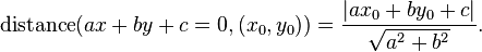Z bodu (x0, y0) do řádkové sekery + by + c = 0.